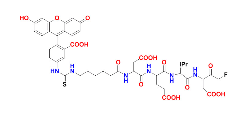 胱天蛋白酶的活化在細胞凋亡中發(fā)揮著主要作用。FITC-C6-DEVD-FMK提供了在活細胞中靈敏檢測活化的胱天蛋白酶-3的方便手段。FITC-DEVD-FMK是細胞滲透性的,無毒的,并且不可逆地結(jié)合到活化的胱天蛋白酶-3在細胞凋亡。在FITC標記的可用于直接檢測活化的胱天蛋白酶的凋亡細胞可通過熒光顯微鏡,流式細胞儀,或熒光板讀數(shù)器進行。