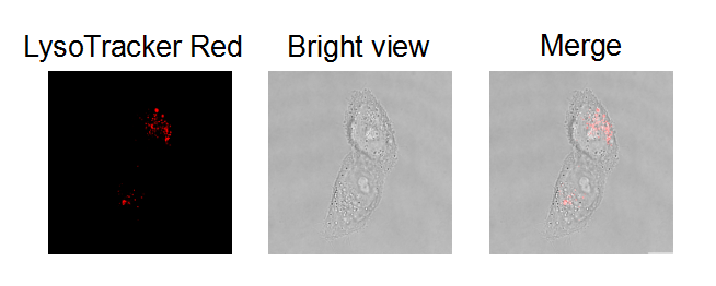 LysoTracker Red探針由一種連接一個弱堿基的熒光基團(tuán)組成,其中僅弱堿可部分提供質(zhì)子,以維持PH在中性值。這使LysoTracker Red探針能自由無阻地滲透細(xì)胞膜,使其能夠標(biāo)記活細(xì)胞。一般聚集在球形細(xì)胞器上,適用于觀察溶酶體內(nèi)部生物合成及相關(guān)發(fā)病機(jī)理。探針對酸性細(xì)胞器有高選擇性,與二硝基苯 (DNP)不同,溶酶體紅色熒光探針DND-99探針不需二抗來檢測。