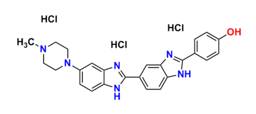 Hoechst 33258細(xì)胞核染料是一系列熒光染料,用于在熒光顯微鏡中標(biāo)記DNA。它們也常用于可視化細(xì)胞核和線粒體的染色??蒲兄型ǔJ褂玫膬煞N分別為:Hoechst 33258和Hoechst 33342。 兩種染料都被約350nm的紫外光激發(fā),并且都發(fā)射藍(lán)/青色熒光,發(fā)射最大值為461nm。 Hoechst染色劑可以與活細(xì)胞或固定細(xì)胞一起使用,并且通常用作另一種核酸染色劑DAPI的替代物。 它們之間的關(guān)鍵區(qū)別在于Hoechst 33342的額外乙基使其更具親脂性,因此更容易穿過完整的細(xì)胞膜。在某些應(yīng)用中,Hoechst 33258的滲透性明顯低于Hoeschst 33342。這些染料也可用于通過繪制標(biāo)準(zhǔn)的發(fā)射 - 含量曲線來檢測樣品的DNA的含量。