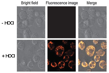 與HOCl反應產(chǎn)生強烈熒光。專一性高,背景低;用于生物樣品中HOCl含量的測量與熒光成像;用于Myeloperoxidase (neutrophils) 的活性研究.